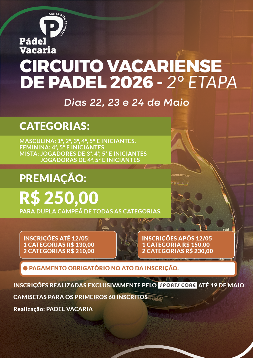Você tem receio de vir jogar Pádel por não ter muito conhecimento sobre o esporte? Não se preocupe com isso. Aqui no Pádel Vacaria você tem a opção de realizar aulas com o acompanhamento de instrutores especializados na área. Eles irão te auxiliar em tudo que você precisar e tirar todas as suas dúvidas.
